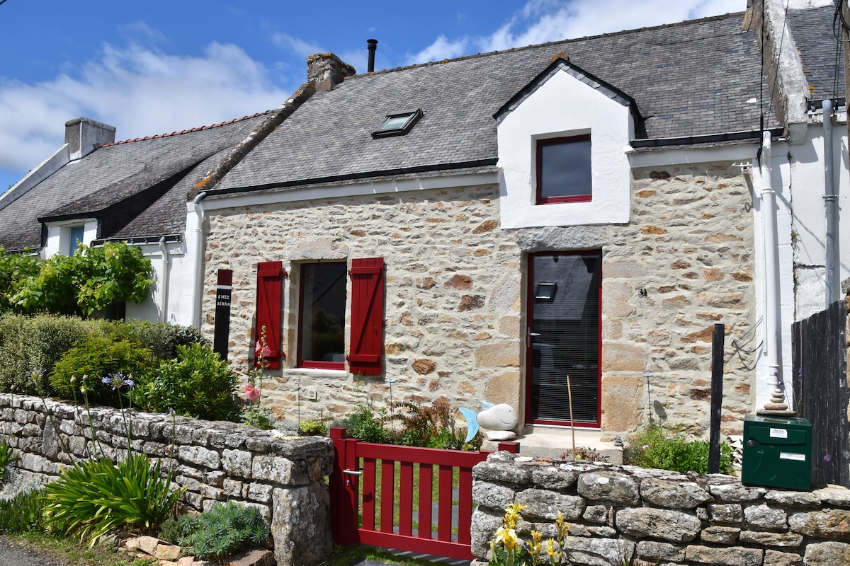 Appartement t2 de 43 m² indépendant d' une maison individuelle exposition Sud, 2 à 4 personnes. Au sein d' un magnifique village Breton de bord de mer, 5 minutes à pieds de la plage et du bourg. Situé au calme dans un écrin de verdure, jardin paysagé et clôturé d'un muret typique de pierres sèches.