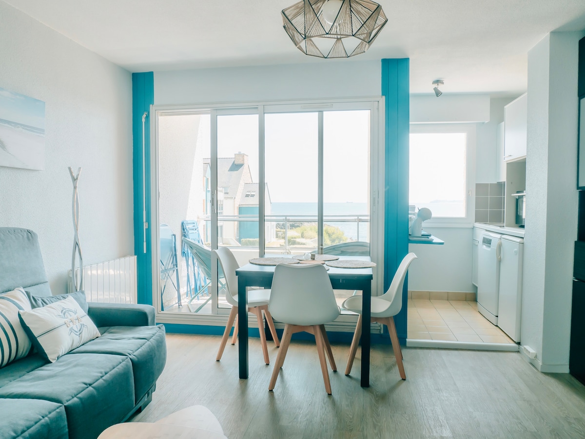 Premium apartment sleeping 4 people with an incredible view on the sea and the bay of Lorient from the three balconies, offering each a different perspective. Direct access to the beach of Larmor-Plage, nearby all amenities, shops, restaurants, sealing club and even a casino! Probably one of the best places to be when visiting South Brittany with a breath-taking view.