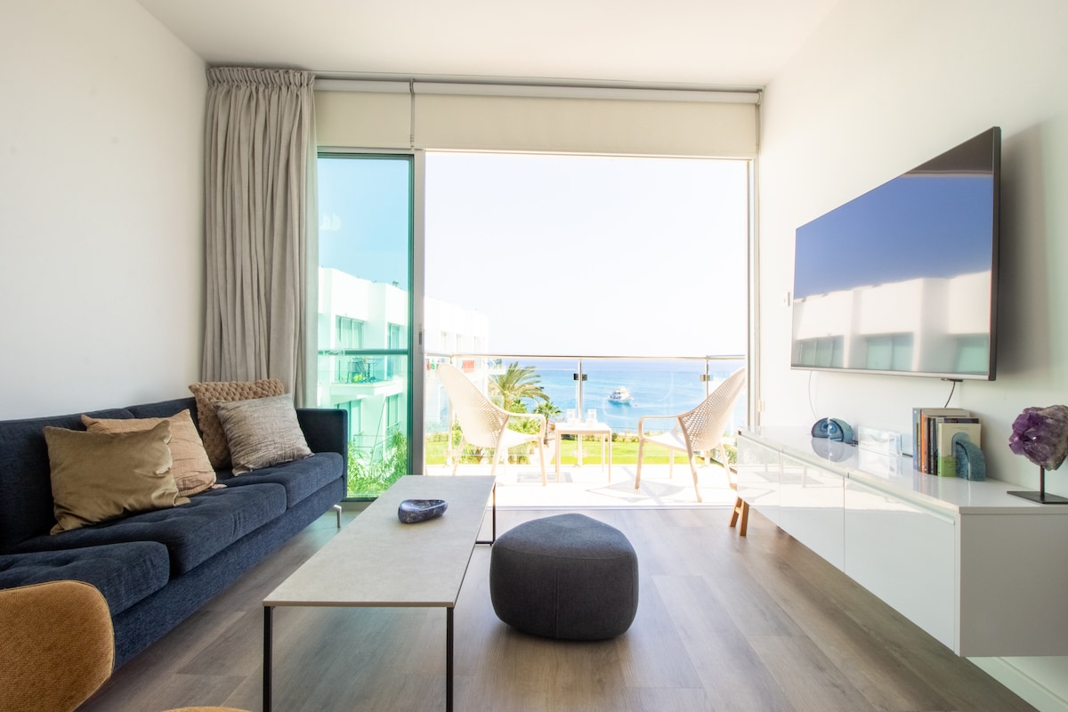 Fabulous one bedroom apartment, right on the beach, with undisrupted seafront views. It's close to watersport facilities, Cyprus Tourism beach, hotels and restaurants. A great way to start your day by waking up to the amazing clear blue waters view. Nice sandy beaches. You'll also find it very convenient as it's approx a 15min drive to the airport, 20min to Ayia Napa, 30min to Nicosia and under an hour to Limassol!