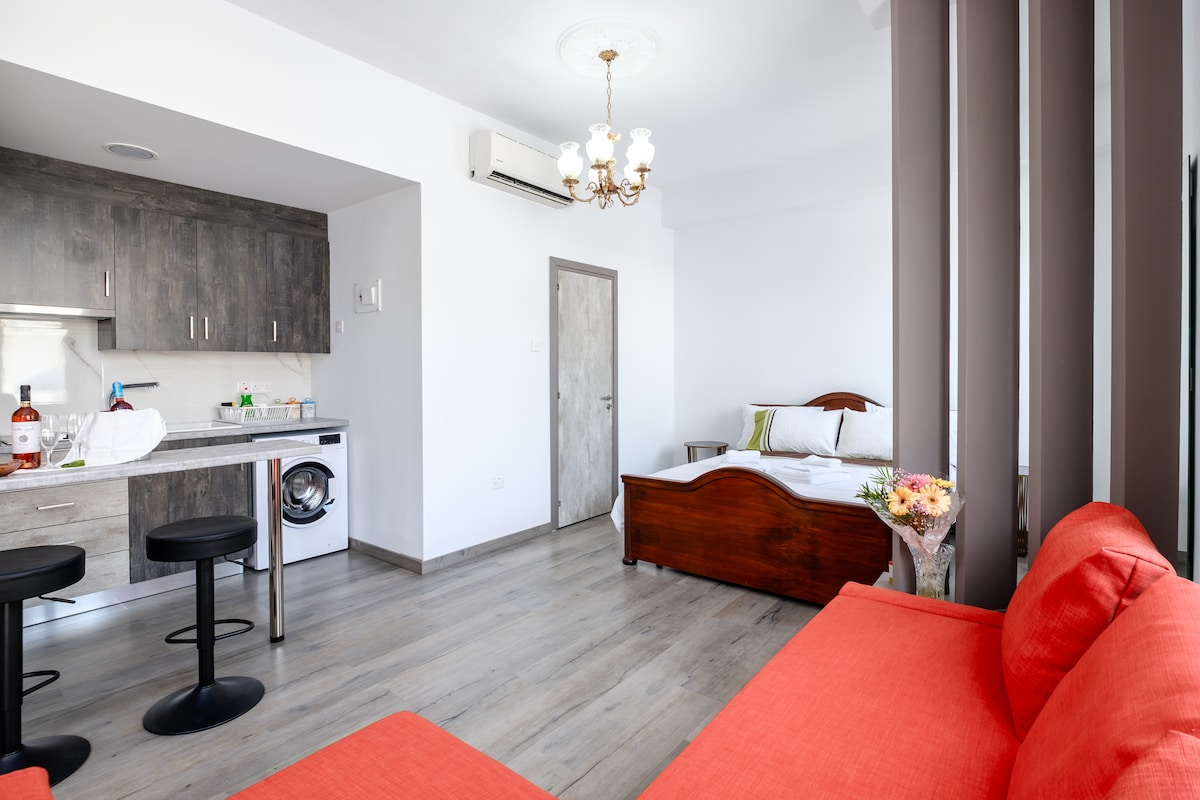 Fully just renovated studio in the city center minutes away to all amenities. The beach is 5 minutes away ( famous Finikoudes beach ) walking and nearby can be found supermarkets , Taverns , restaurants , bars , pharmacies and all necessities. There is a pilates and TRX studio next door for gym lovers ( available upon request )