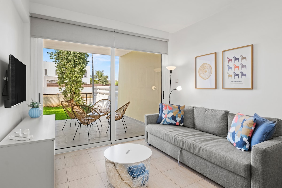 Kick back and relax in this calm, stylish space. Our sunny studio oasis is perfectly located in a quiet residential building in central Larnaca. Enjoy easy access to the Metropolis Mall and the beautiful Larnaca Finikoudes beach, just a 5 minute drive away. The airport is conveniently situated a short 12-minute drive from your doorstep. Our apartment is an ideal base for exploring all that Larnaca offers, with easy access to highways connecting you to Nicosia, Limassol, and Ayia Napa.