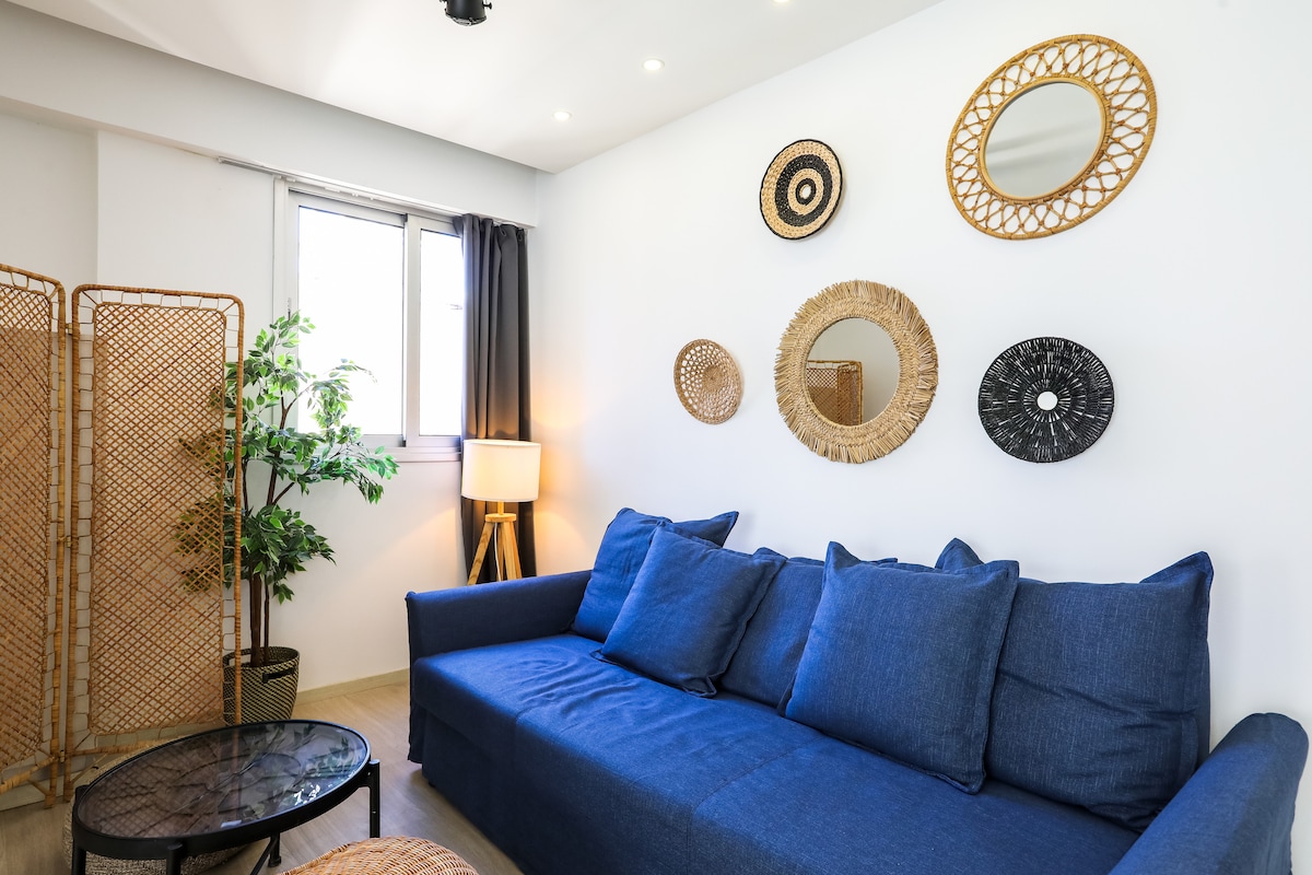 Kick back and relax in this calm, stylish space. Our sunny studio oasis is perfectly located in a quiet residential building in central Larnaca. Enjoy easy access to the Metropolis Mall and the beautiful Larnaca Finikoudes beach, just a 5 minute drive away. The airport is conveniently situated a short 12-minute drive from your doorstep. Our apartment is an ideal base for exploring all that Larnaca offers, with easy access to highways connecting you to Nicosia, Limassol, and Ayia Napa.