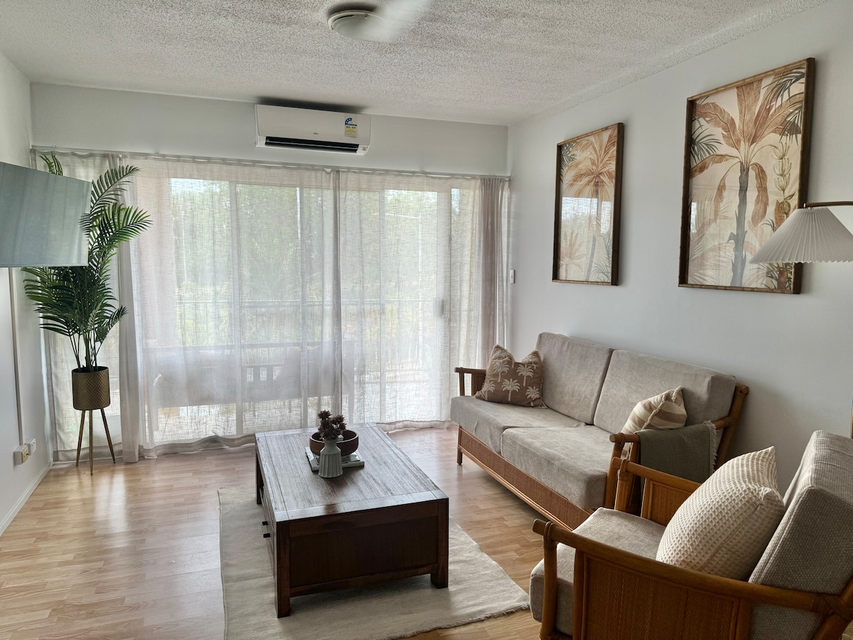 As new, extremely clean, 1 Bedroom Unit with your own exclusive private outdoor sitting area area inc laundry, table tennis, & exercise equipment. You have filtered water along with your own entrance to swimming pool & bbq area which you can use exclusively also. Enjoy a luxury modern interior setting with your own kitchen, refrigerator and massive 65” 4K Smart Android TV. Please note for some reason Airbnb persist in listing this as Leanyer as it is across the road it is considered Wanguri