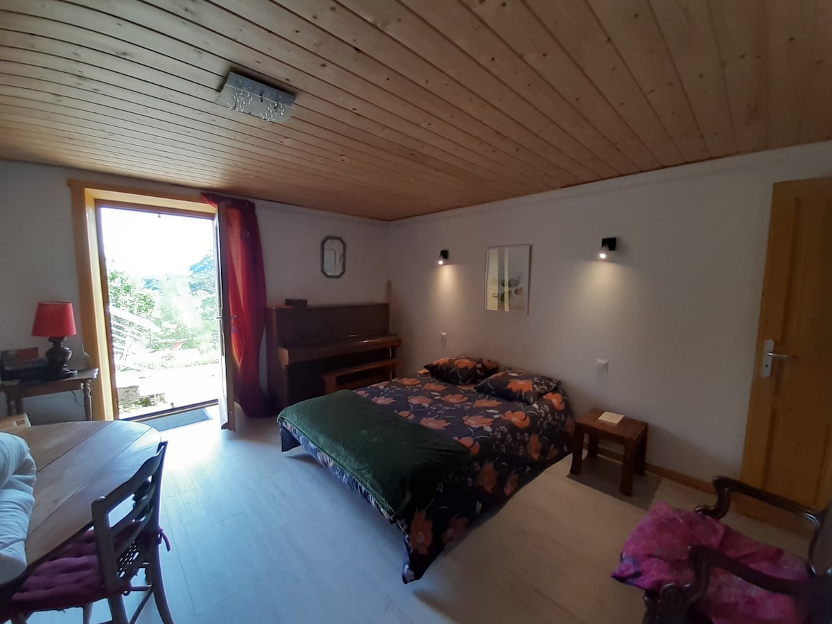 appartement entier, avec un grande pièce à vivre avec un lit double confortable, cuisine et salle de bain, au rez de chaussée d'une maison en pierre de 1835, donnant au sud sur une charmante place de village du Haut-Jura et au nord sur une terrasse et jardin (non clôturé )et son magnifique paysage. Au plaisir de vous accueillir Christine