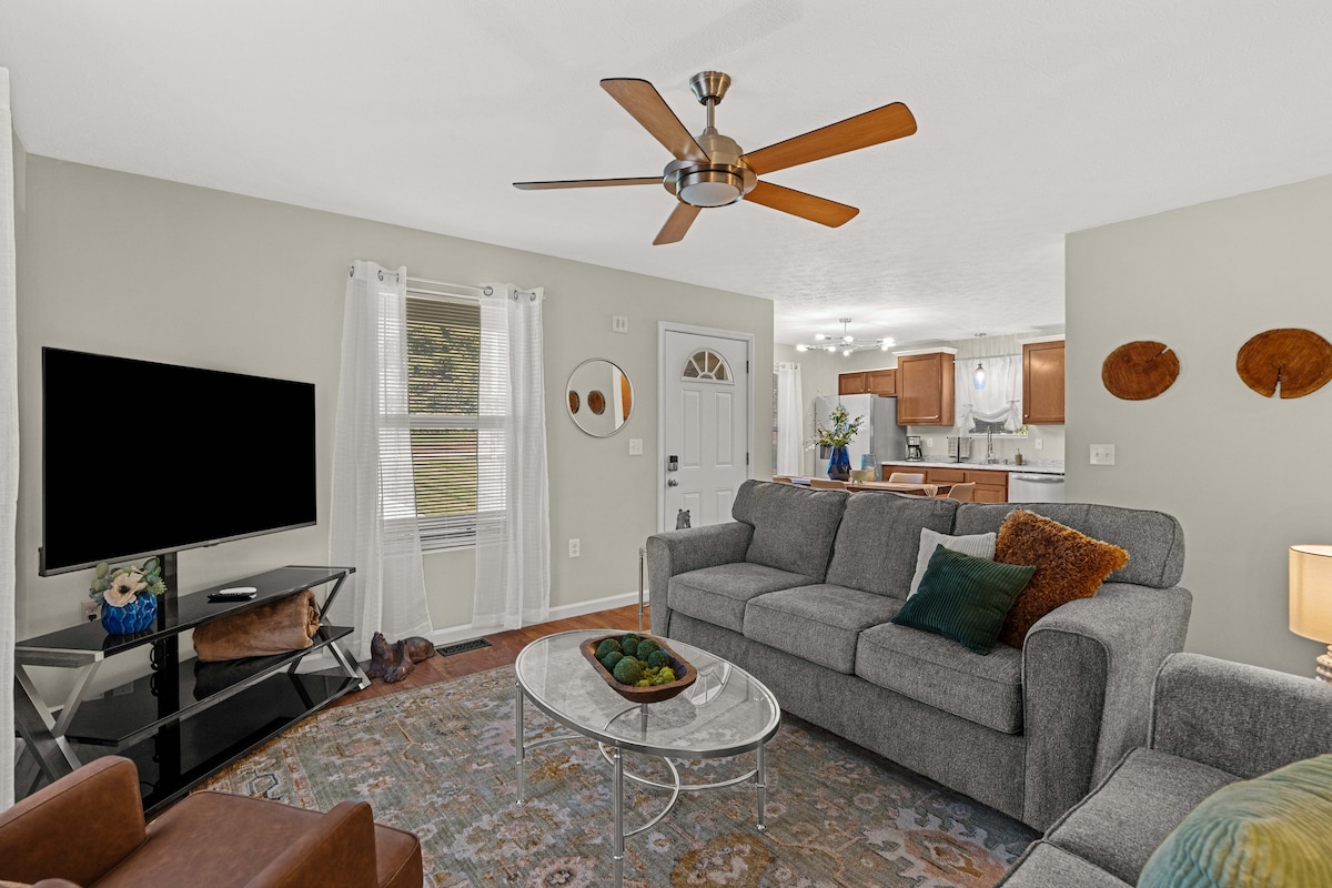 Welcome to The Lexington Luxe Retreat! 🌟 Step into our refreshed three-bedroom, two-bathroom haven with all-new furniture and a vibrant Kentucky theme. Perfect for relaxing in cozy living spaces with premium mattresses, plush linens, and quality towels. Enjoy the private fenced yard with a jungle gym and fire pit. Plenty of driveway parking and say hi to Edgar, our friendly pet groundhog! For a weekend or extended stay, make The Lexington your funky home base in Kentucky. Book today! 🌈🔥