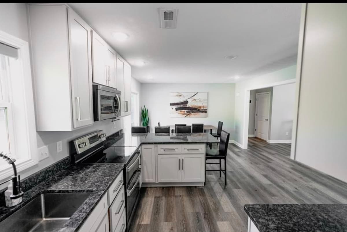 Welcome to the E-Town House on N Miles! *PRIME LOCATION* This is the perfect place for your stay in Elizabethtown, KY. Only 3 Miles off of I-65, 2 Miles from downtown & many local eateries, and 4 Miles to the Elizabethtown Sports Park! High speed WIFI - Smart ROKU TV's in every bedroom! Plenty of parking, carport and a two car garage. Three bedrooms - all NEW, high quality mattresses, 1 King, 1 Queen, 2 Twin XLs, 1.5 Baths, fully stocked kitchen with stainless appliances and a coffee bar/keurig