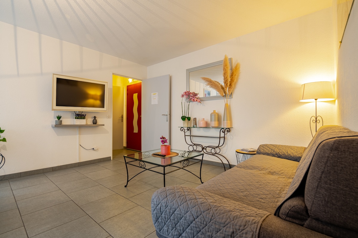 Appartement dans résidence récente « Pic du Midi » composé d’une pièce de vie avec canapé convertible, d’une chambre avec lit double 160 cm, WC, salle de bains, terrasse orientée sud avec vue montagne. Cuisine équipée : frigo, plaques, lave-vaisselle, micro-ondes, bouilloire, cafetière Nespresso. TV, aspirateur, casier à ski et parking couvert. La résidence dispose d’une piscine chauffée, d’une salle de sport avec accès gratuit et d’une machine à laver le linge. Pistes à 3 min à pied.