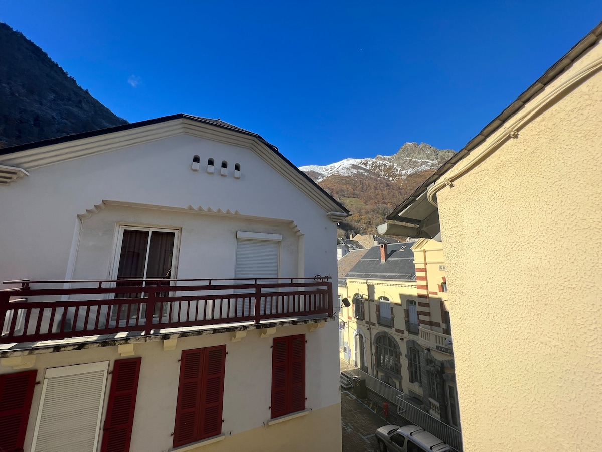 Appartement clair et lumineux, situé en plein centre-ville à proximité de tout, télécabine du Lys, les thermes césar, office de tourisme, bain du rochers avec vue sur les montagnes et sur le gave depuis les fenêtres de l'appartement. idéalement 4 pers, possible 6. Linge de lit, de cuisine et toilette non fournis. Alcôve avec lits superposés 1 personnes, coin chambre, coin cuisine, nombreux placards. Equipement bébé sur place. 1 placard à skis individuel Location weekend / semaine / cure