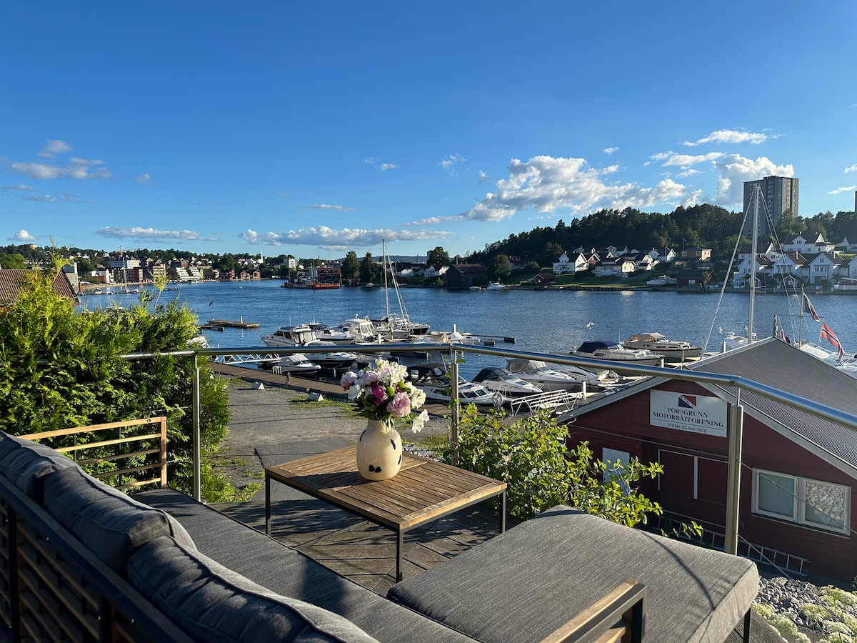 Modern and attractive house with 3 bedrooms. The house is located quietly, in the middle of a cul-de-sac with a fantastic view over the Larviksfjord, where sea and sky meet. This is recreation for the soul and a good place to be. Live with the sea right in front of you and the beautiful Bøkeskogen right behind. You have everything within reach; Bølgen cultural centre, Indre Havn, beach, Spa, town, restaurants, hiking, coastal path, training, transport. Everything within a 5-10 minute walk.