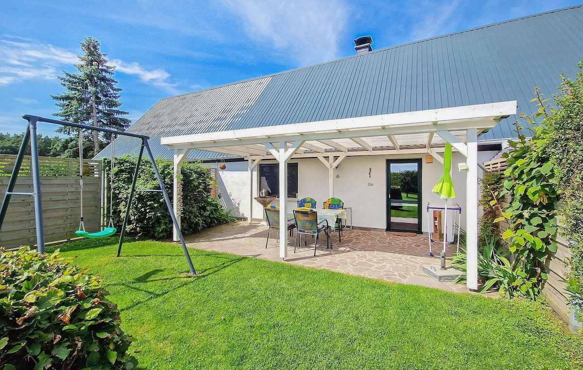 Lehne dich zurück und entspanne dich – in dieser ruhigen, modernen Unterkunft nur 150 Meter von Badestelle am Schwarzer See. Die geräumige Sauna, die vollausgestattete Küche mit z.B. Spülmaschine, Nespressomaschine, die Terrasse, die zwei getrennten Schlafzimmer mit elektrischen Jalousien lassen keine Wünsche offen. Der Schwarzer See darf nur mit Elektrobooten befahren werden und die nächste Einkaufsmöglichkeit befindet sich im 5 km entfernten Mirow.