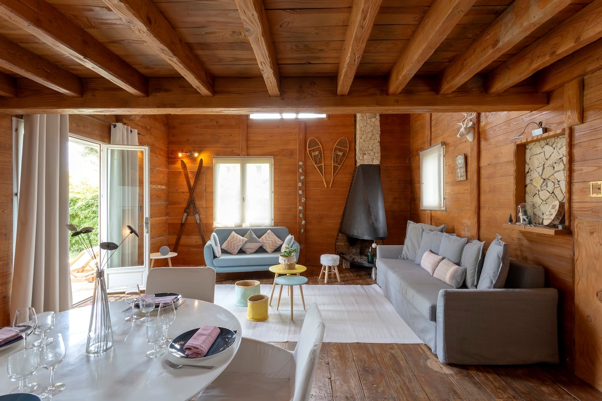 Ni vraiment une cabane, ni totalement un vrai chalet…L'originalité à 15mns du centre-ville de Montpellier...Un mazet en pierre avec un intérieur en bois de chalet de montagne….Un jardin de 700m2 pour les enfants….Le cocooning à l"état pur... Situé dans le centre de Vendargues, à 15 mns en voiture de la Place de la Comédie, grâce à l’entrée/sortie d’autoroute toute proche…Visitez la région de Montpellier avec une multitude de découvertes à 1h maximum de route…