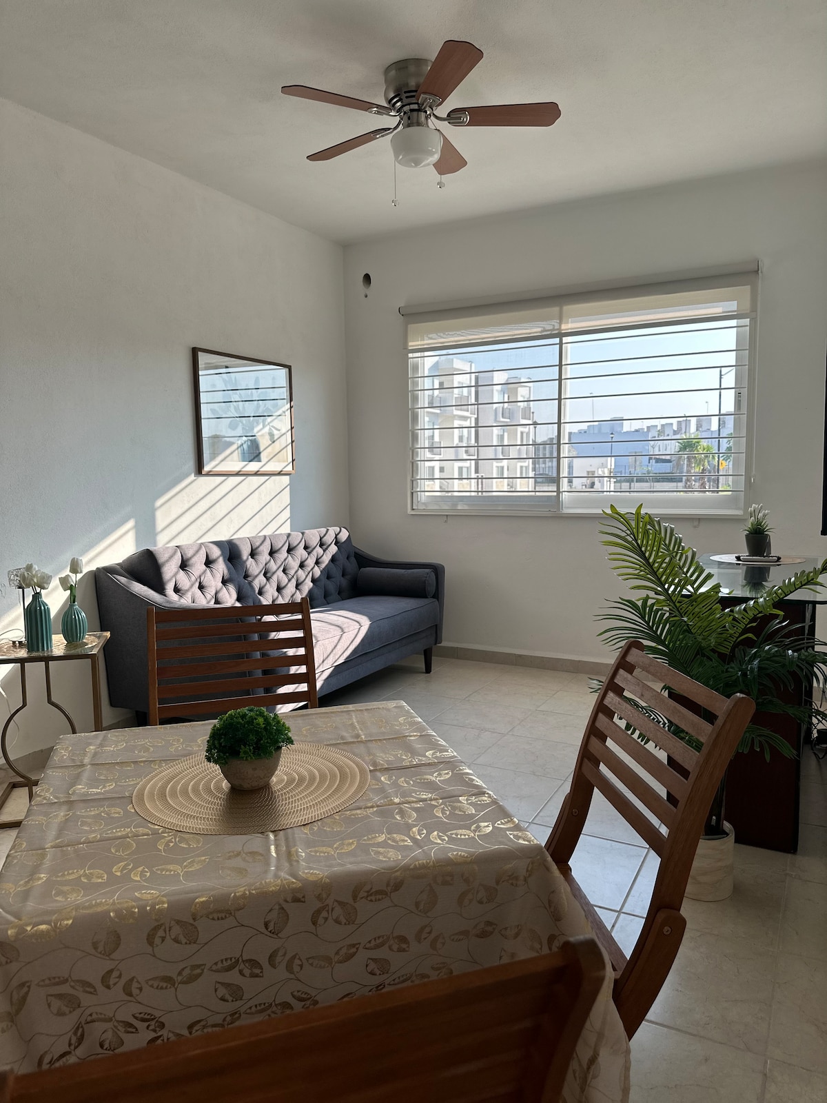 ✨️Departamento NUEVO en Planta Baja apto para viajeros🧳, familias con niños👨👩👦 🏊♂️y Alberca frente al departamento.🏖 🔒Fraccionamiento con Vigilancia 24/7 🛎Llegada Autónoma ❄️ A/C 🛜Wi-Fi 🍳 Cocina equipada con refrigerador, estufa, microondas,cafetera y utensilios. 🛏️ 2 Acogedoras Recámaras con 3 camas 🚿 Baño privado con toallas, jabón y artículos básicos. 🚗 Estacionamiento privado y acceso seguro al complejo. 🛩8 min del Aeropuerto 🏝A 20 minutos de playas y centro.
