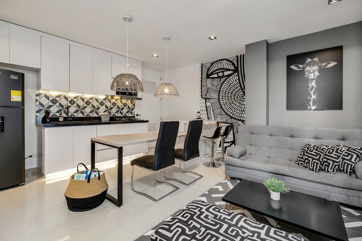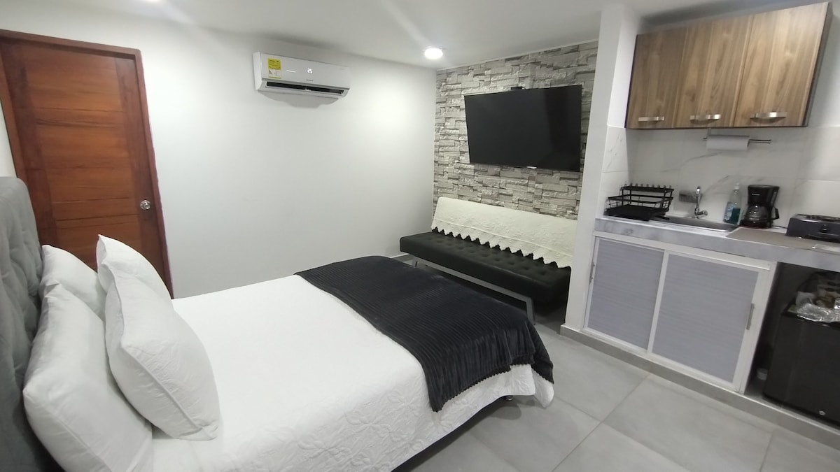 1 BR Loft Suite in the heart of Cartagena inspired by some of the finest 5 star Hotels in the world. Located inside the walls of the old city, within walking distance to shops, entertainment, restaurants, nightclubs and bars. Enjoy staying in this Unesco Heritage town full of history and excitement. Fully equipped kitchen with Washer/Dryer, King Sized Bed, pullout Queen Size Couch, Television, Netflix & 300MbWi-Fi. Our modern beach vibe apartment is perfect for a couple to enjoy and relax.