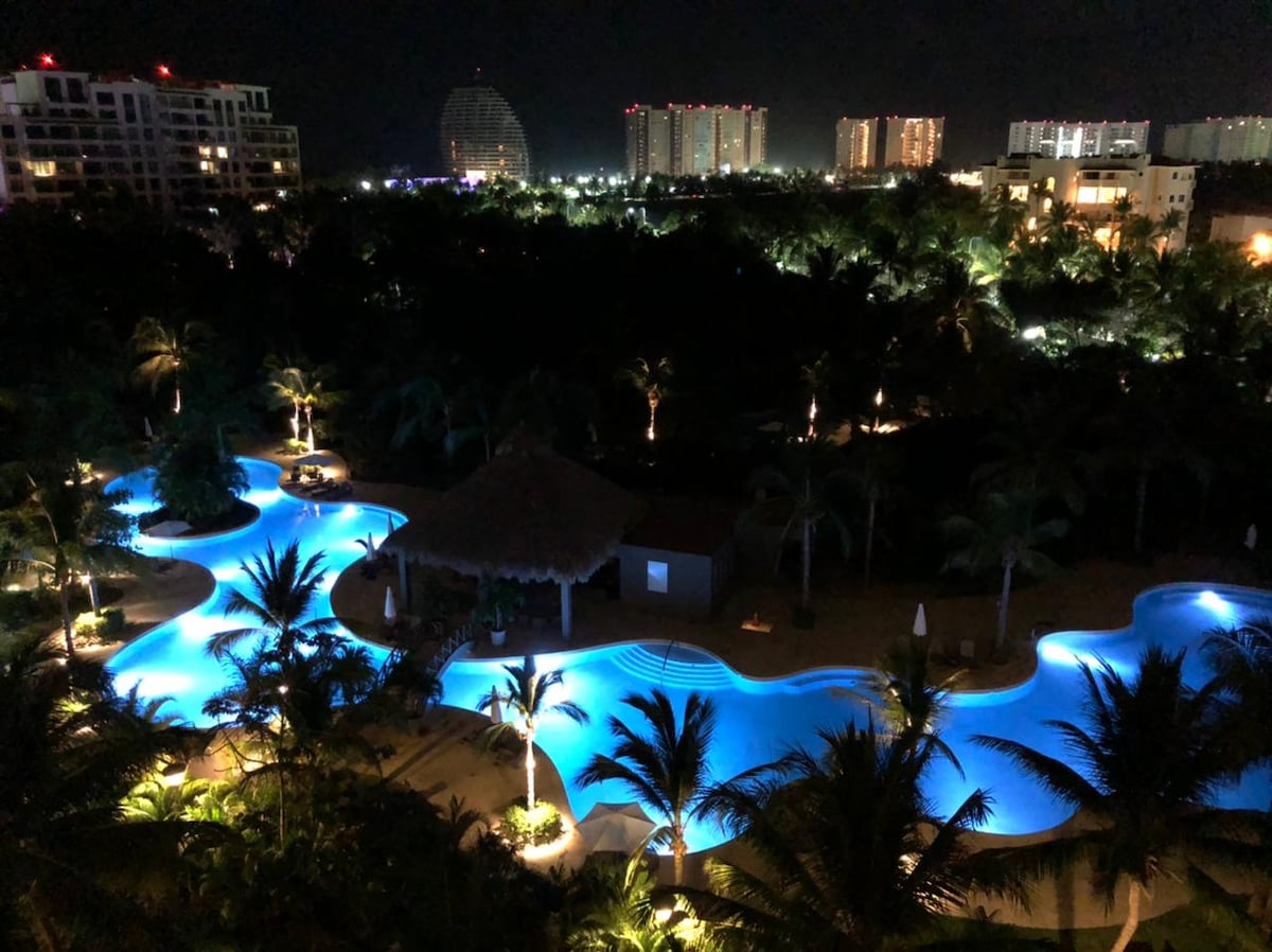Hermoso departamento recien remodelado en 2024 con 2 recamaras y 2 baños. El departamento esta completamente equipado para pasar unas vacaciones estupendas. El desarrollo es uno de los más exclusivos y lujosos de Acapulco diamante y cuenta con grandes albercas, toboganes, gran extensión de Playa, Espectacular SPA, preciosos jardines, cine, Gimnasio, canchas de tenis, snack bar, entre muchas otras cosas. Acceso directo a el centro comercial La Isla Shopping Village. El mejor lugar de Acapulco