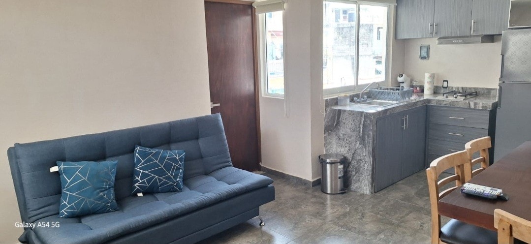Hola qué tal la casa Audi (Privacidad) tenemos Estacionamiento para moto, carro, muy seguro, un resividor afuera (mesa y sillas), al entrar puedes ver qué no ahí escalones, una sala grande un comedor hermoso, la cocina bien equipada y con todo lo básico para que cocines tranquilamente, dos recamaras grandes con ventilador, dos baños completos con ( toallas, jabón, papel higiénico) ideal para tu higiene personal , cuenta con una hermosa terraza donde puedes descansar.