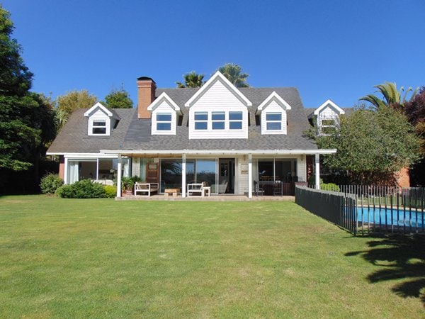 Amplia casa con linda vista a las canchas de golf . Terraza y parrilla . 1 piso: Living y comedor separados Cocina Dormitorio 2 plazas con baño en suite 1 dormitorio con 2 camas de 1 plaza 1 dormitorio con camarote y una baño para ambos dormitorios Dormitorio de servicio con camarote y baño fuera de la casa 2 piso: Dormitorio principal con baño en suite y otro dormitorio pequeño Se arrienda sin sábanas ni toallas. Cuenta con lavavajillas y lavadora. Amplio estacionamiento y jardín.