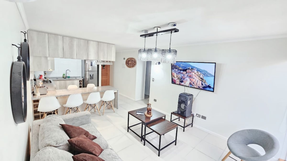 Estudio Kiwi es un espacio ideal para relajarte y descansar. Es un departamento tipo estudio de 35 m2 ubicado en las rocas de Santo Domingo. Cuenta con una preciosa vista despejada al mar y a la exuberante naturaleza del club Santa María. Este espacio, ubicado a pocos metros de la playa y cercano a restaurantes, cuenta con todas las comodidades que necesitas en un entorno moderno y seguro. Incluye una cocina completamente equipada, estacionamiento gratuito, toallas y ropa de cama.