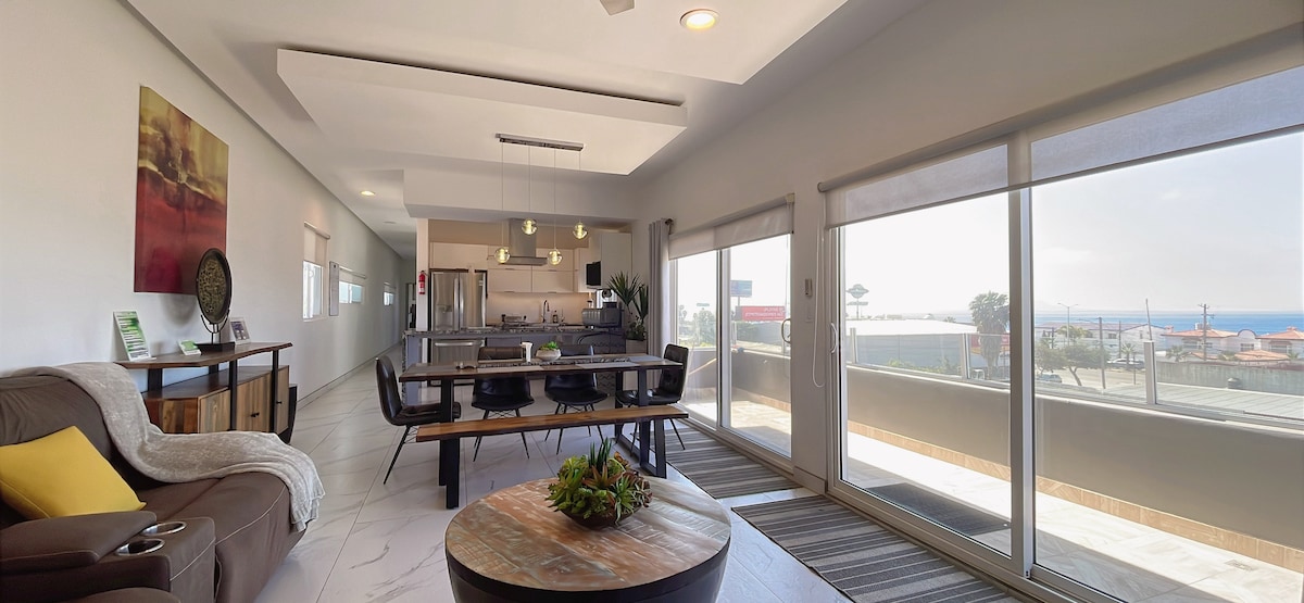 Welcome to your seaside retreat in Ensenada. This apartment offers stunning ocean views and the perfect atmosphere for romantic getaways. Thoughtful details make all the difference: a coffee bar, fully equipped kitchen, wine fridge, TV, internet, and cozy blankets. Although Torre Viento is still a project in development, the setting remains private and will not affect your experience. Enjoy nearby restaurants, wine cellars, craft breweries, and a local market.