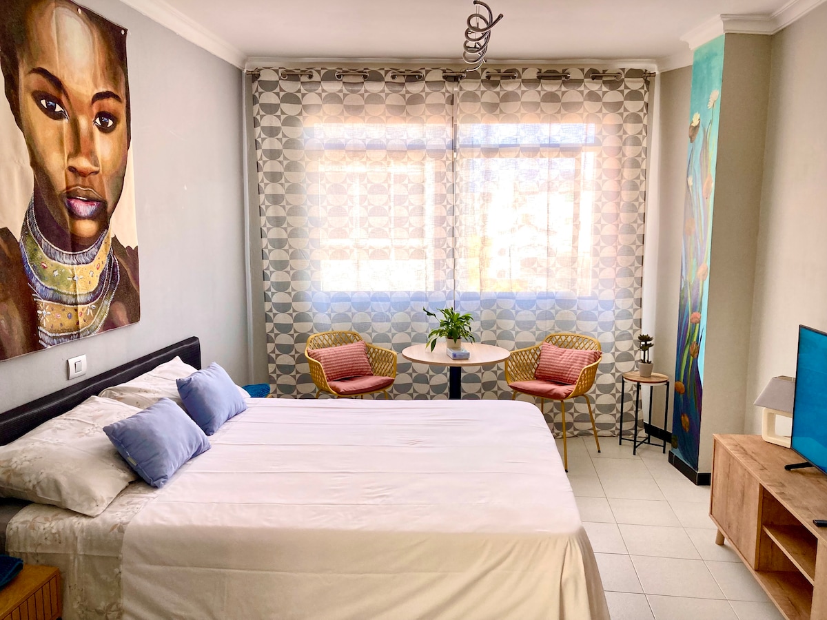Very nice and cozy studio apartment BEACH VIEW located in Calle Luis Morote. The apartment it's around 27 square meters, it is JUST RENOVATED and designed by a famous architect of Las Palmas. There is a beautiful window where you can see the beach - it's a 4th floor so no noise from the street. There is a fully equipped kitchen if you want to cook + a nice and comfortable bathroom with a big shower. It's so close to the beach and to the Paseo Las Canteras. You have also a SMART TV and fast Wi-Fi
