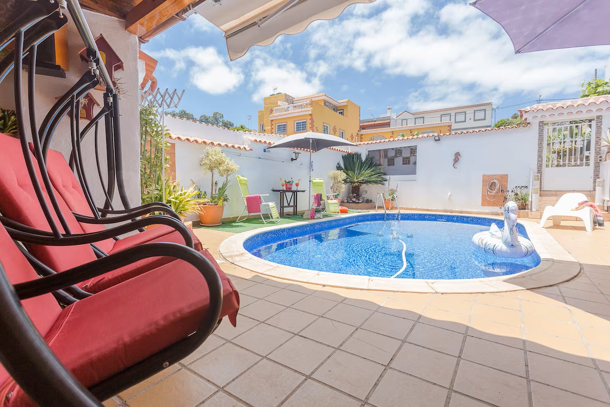 Con esta estupenda piscina recién reformada y climatizada, olvídate de las preocupaciones en este gran alojamiento: ¡es un oasis de tranquilidad! Ideal para desconectar, lugar ideal desde donde comenzar tu ruta de senderismo o en bici hacia la Caldera de Bandama, a 15 minutos de la capital y a 30 minutos del sur de la isla. El alojamiento perfecto si quieres visitar varios puntos de Gran Canaria.