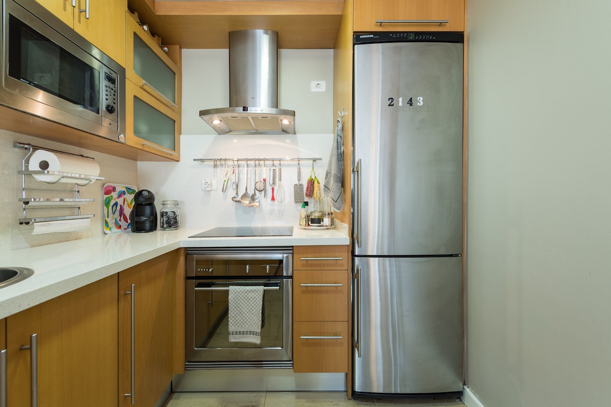 Nice apartment, very well equiped, full of light, of about 50 square meters and consisting of 1 bedroom, bathroom and living room open to the kitchen. It is located in a pedestrian street (fourth floor with lift) only a few meters from the beach and in the best area of the capital of Gran Canaria to enjoy the city. You can use everything in the house- usually we'll leave some water, olive oil, spices, salt, coffee, and all the basics. We offer you lots of towells and beautiful linen.