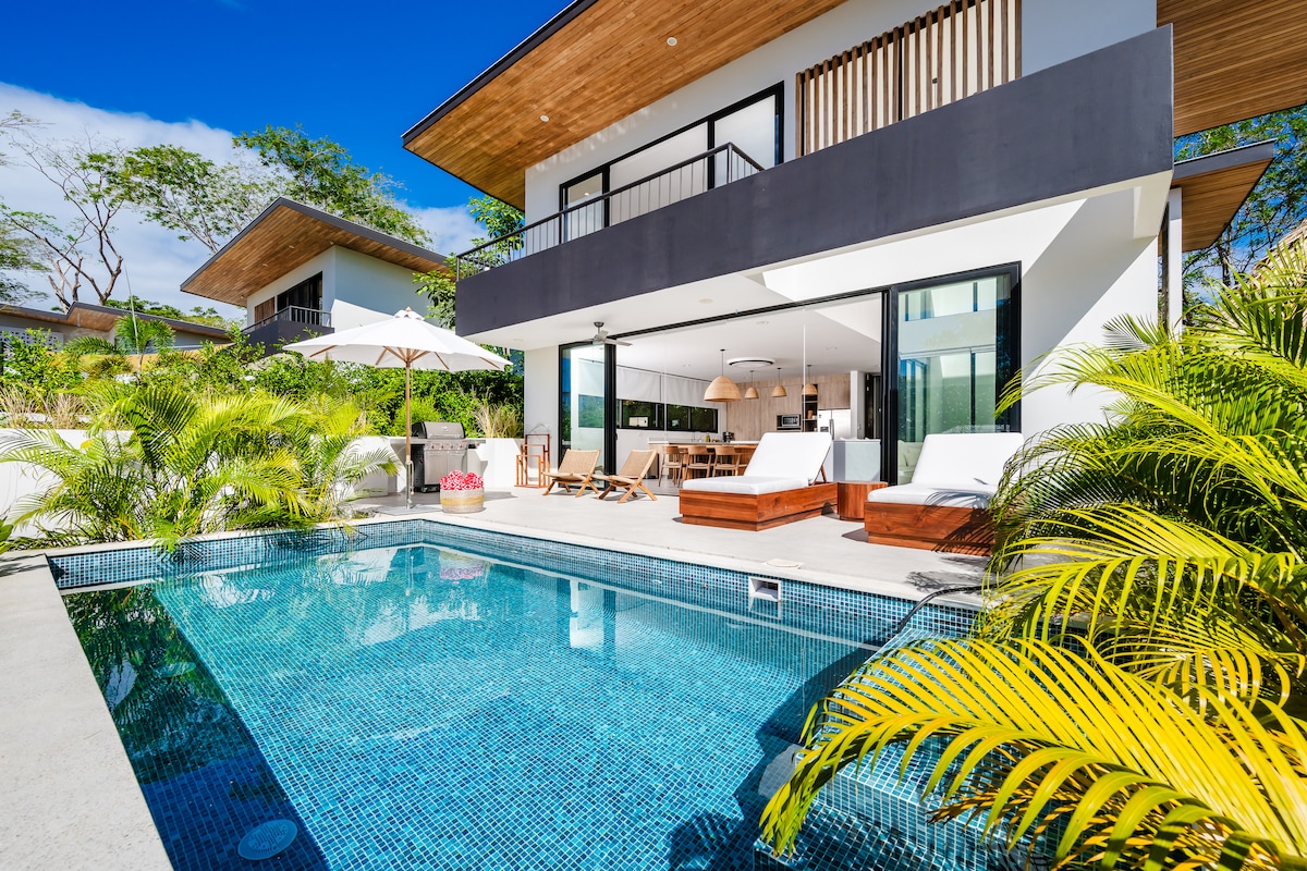 Spaciousness, comfort, open air, modern, tropical, atypical, natural lighting, breath taking views, built in the jungle and as sustainable as possible. Top Location near so many beautiful beaches and adventures. Only 8mins away from Playa Grande's great waves for surfing and colorful sunsets. Fully equipped kitchen, Fast wifi, pool, A/C, 360-degree panoramic views and relaxing vibes. Exquisite design and decoration created by Gaia Studio Costa Rica.