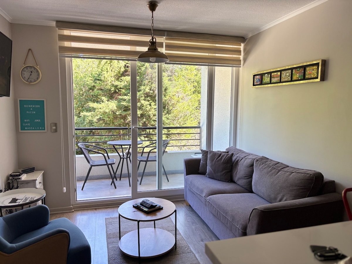 Espectacular depto con estacionamiento, a solo 4 minutos del centro de Pucón y a 20 minutos del centro de ski. Entrada por código de acceso con chapa electrónica. El departamento cuenta con conexión a internet por fibra óptica de alta velocidad, smart tv, cocina equipada, secador de pelo, sábanas, espectacular cama de dos plazas Rosen con topper. Experimenta la esencia de Pucon en este departamento con detalles únicos. Piscina habilitada solo temporada de verano.