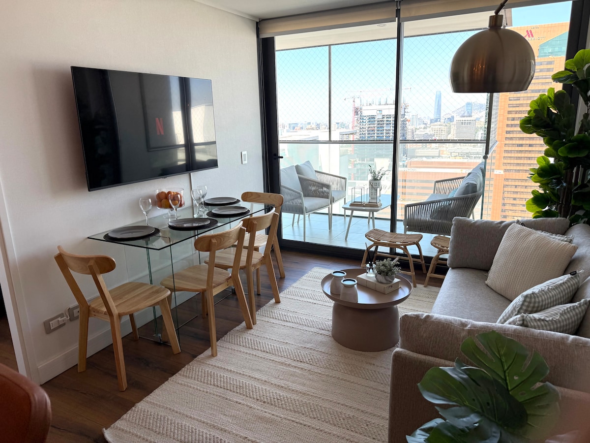 Wake up in the exclusive El Golf district. Spacious, bright, and fully equipped apartments. Featuring three bedrooms (master en-suite), an open-plan living and dining area, a fully equipped kitchen, and a separate lounge ideal for a home office. Enjoy fully autonomous access, high-speed WiFi, and impeccable cleaning standards. Located just steps from the Metro, and surrounded by top restaurants, cafés, parks, and everything you need to move around Santiago with ease.
