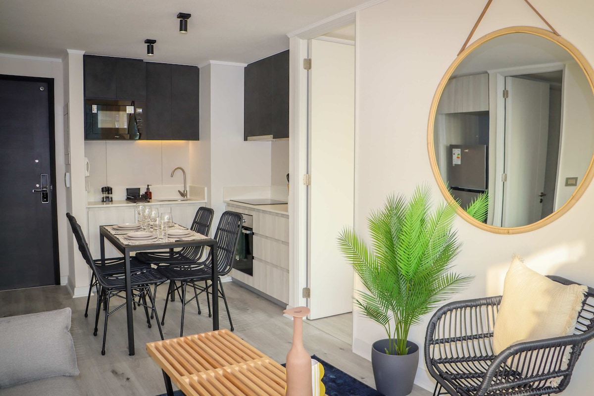 Departamento nuevo y moderno, ideal para una estadía cómoda, tranquila y bien conectada en Las Condes, uno de los sectores más seguros y residenciales de Santiago. Perfecto para viajes de negocios, turismo o escapadas urbanas. Ubicado a pasos de restaurantes, cafés, Mall Alto Las Condes y Parque Arauco, ofrece una excelente combinación entre descanso, servicios y conectividad.