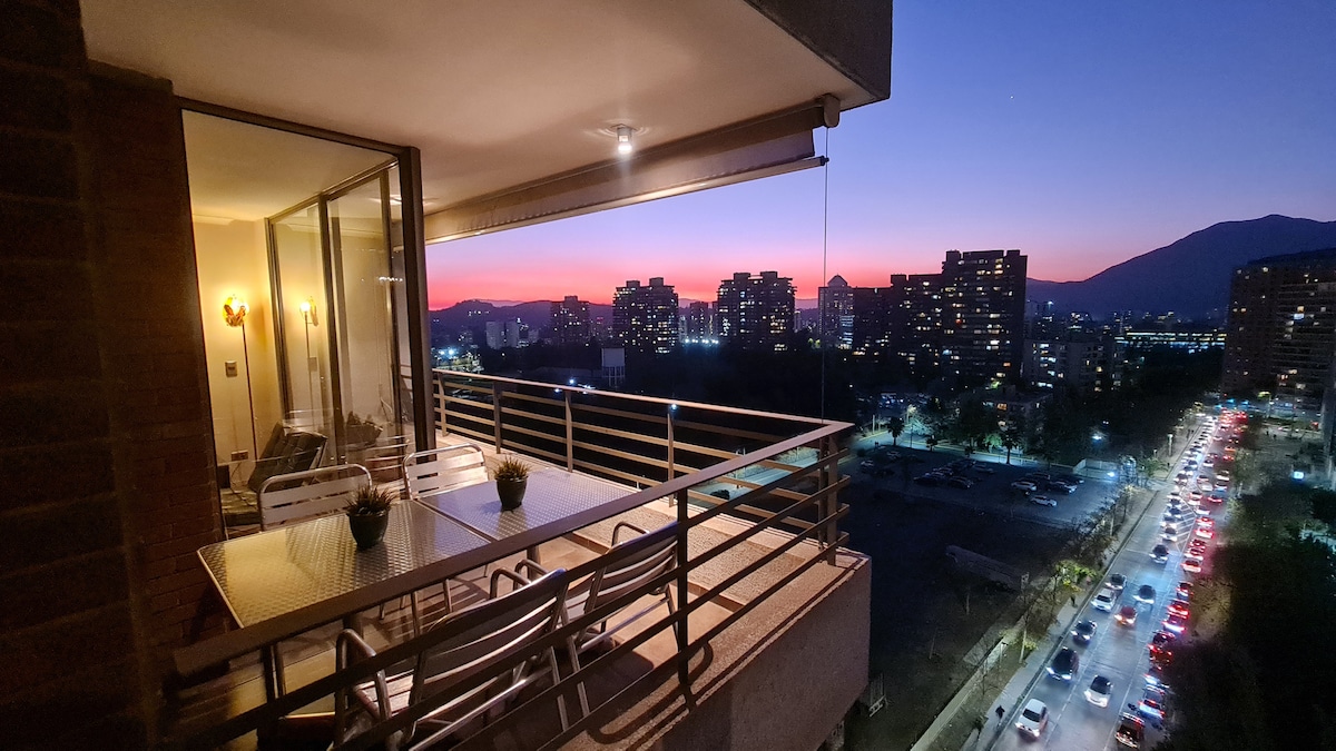 La mejor panorámica de Stgo y ubicación. Mall Parque Arauco, Parque Araucano, Clínica Alemana y Las Condes, Restaurantes, Cine, supermercados... Cercano a Metro Manquehue y accesos a Centros de Ski. Equipado, muy cómodo, ventilador c/control, calefacción central (invierno: may/sep)*, WiFi, seguridad 24h, cortinas black out, lavadora/secadora en departamento, smart TV, estacionamiento, piscina climatizada y panorámica*, sauna y GYM. Accesos digitales. Check in: 15:00 Check out: 11:00 *Consultar