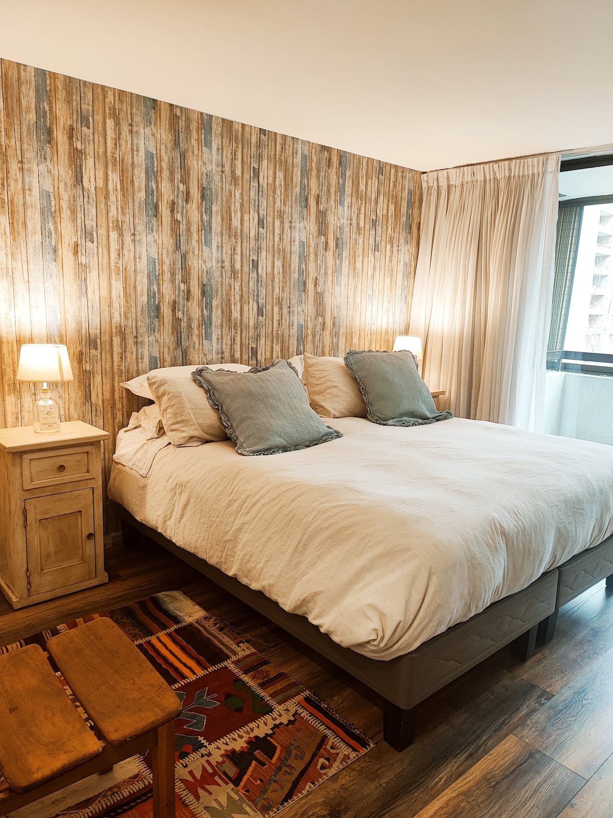 Bienvenid@ a tu refugio en Vitacura Te invitamos a disfrutar de este cómodo y luminoso departamento, ubicado en una de las zonas más lindas y seguras de Santiago. Aquí estarás a pasos del Parque Arauco, Open Kennedy, el Parque Araucano y la Clínica Alemana. El departamento está pensado para que te sientas como en casa: tiene una cocina integrada hecha en madera, completamente equipada para que puedas cocinar lo que quieras; una cama king muy cómoda y un sofa cama con topper..