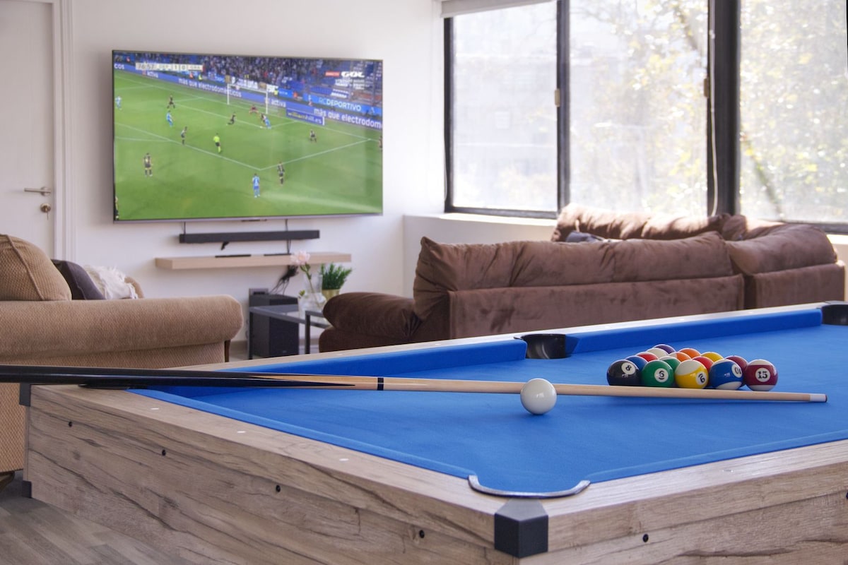 台球桌,空间宽敞,配备空调,毗邻地铁站