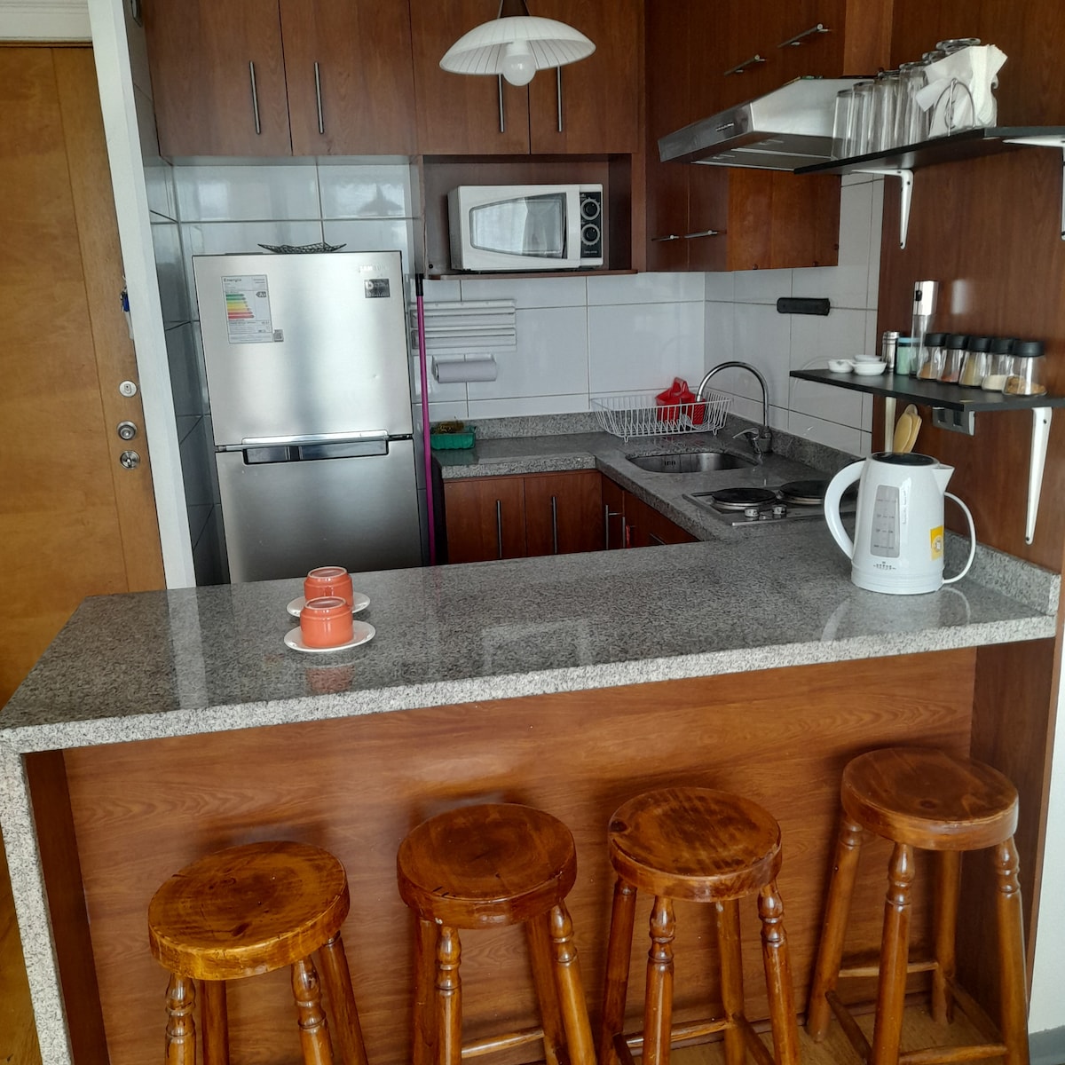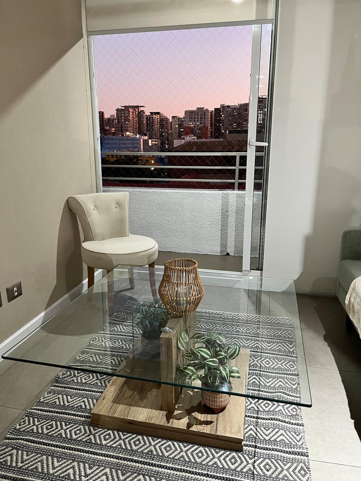 Moderno y acogedor departamento con aire acondicionado en el corazón de Santiago. A pasos del metro y del Centro Histórico, rodeado de museos, mercados y restaurantes. Cama king, cocina equipada, balcón y wifi rápido, ideal para viajes o estadías largas. Edificio seguro con conserje 24/7. Atención personalizada, check-in flexible y recomendaciones locales para que disfrutes la ciudad como un residente, con comodidad y tranquilidad.