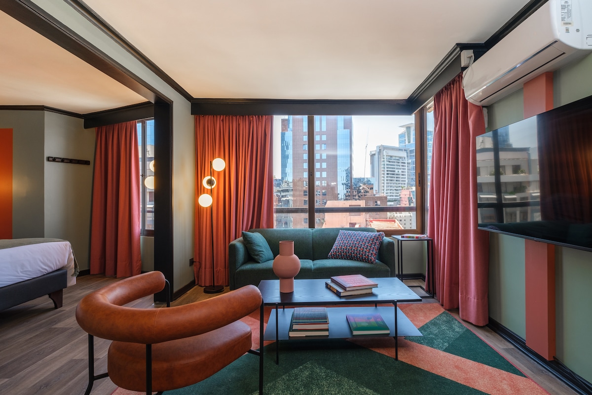 Cozily designed and functional, this 37 m² studio offers a unique open-plan space with 1 bedroom featuring a King-size bed and closet, 1 fully equipped kitchen, 1 full bathroom, 1 living area, Smart TV, Wi-Fi, and 1 parking space. Daily housekeeping and a 24-hour front desk are included, just like a hotel. You’ll have access to shared spaces such as a gym, coworking area, restaurant and panoramic rooftop. Located in El Golf, just steps from the metro, restaurants, shops, and business centers.