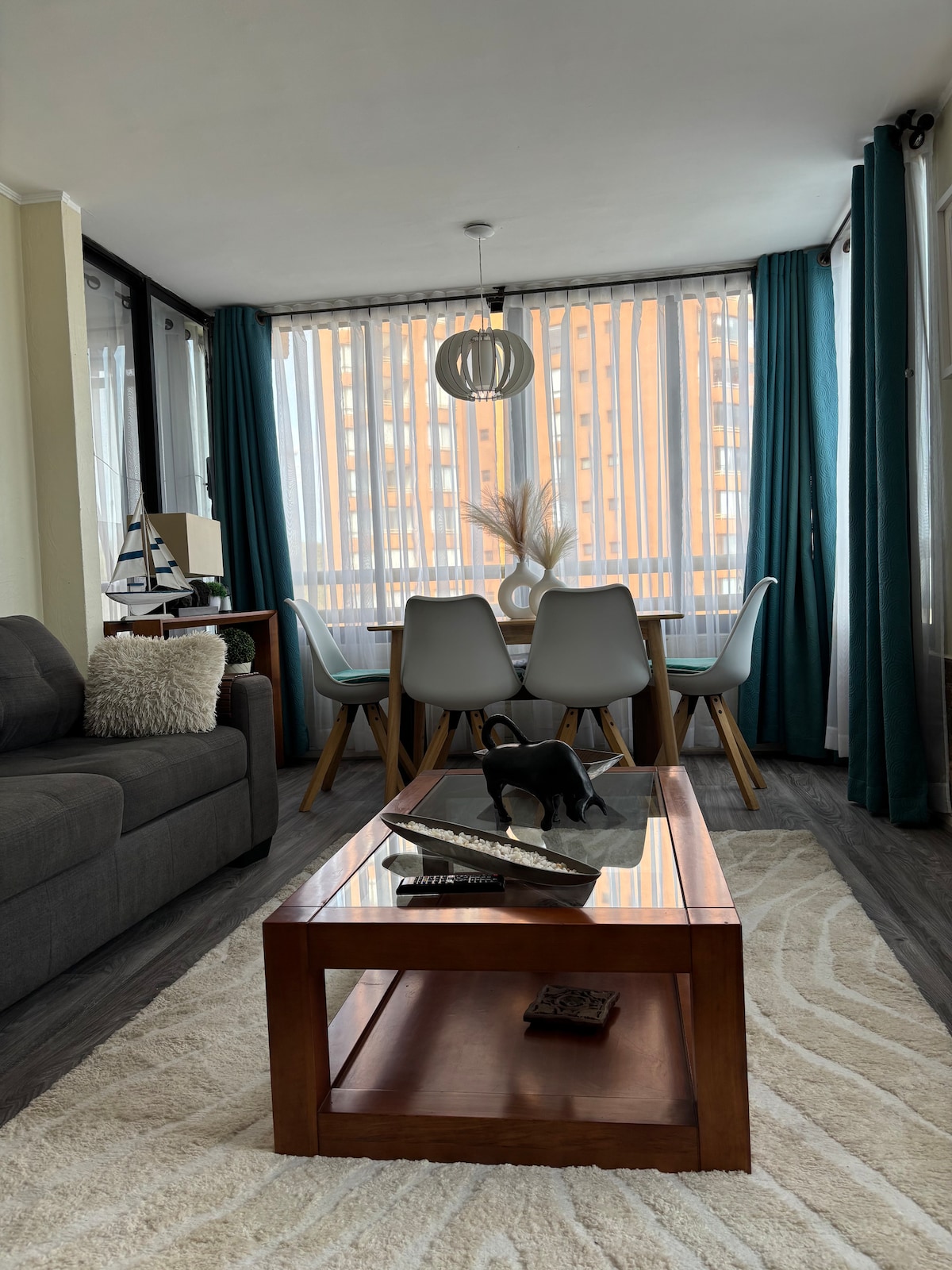 Departamento nuevo full equipado dos habitaciones, un baño, terraza y un estacionamiento horario piscina 10:00-14:00 y 15:00-19:00 lunes no opera por mantenimiento. Departamento ubicado en 4to piso SIN ASCENSOR (no recomendable para personas con movilidad reducida) muy iluminado con excelente vista al mar, rodeado de áreas verdes quinchos (costo adicional) a pasos de la playa y centro del Tabo. CONSULTA DISPONIBILIDAD de segundo departamento