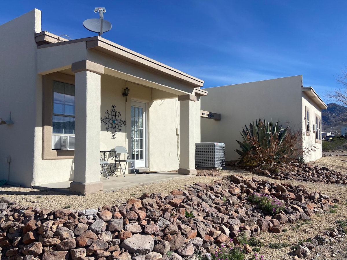Cozy casita just steps from Old Mesilla’s historic plaza and coffee shops. Unwind in your private courtyard with a hot tub, or curl up by the fireplace inside the guesthouse. A kitchenette adds comfort for longer stays. Mesilla Bosque State Park by the Rio Grande is only 4 minutes by car—or a short bike ride—perfect for birdwatching, sunsets, and peaceful walks. The ideal spot for a romantic getaway or quiet retreat.