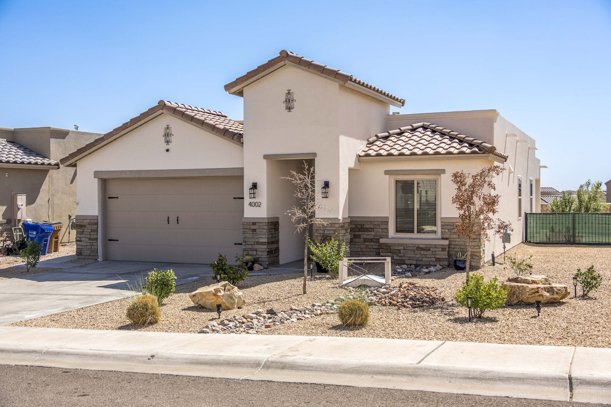 This Luxury Modern Home is made to suit all guests! Whether you are looking for a weekend getaway or a place for work and play, this home has everything to offer in beautiful Las Cruces, NM. Located in a brand new neighborhood near Red Hawk Golf Course and multiple family-friendly parks. Guests can rest peacefully in one of 4 bedrooms and enjoy amenities such as an outdoor grill, outdoor living area, lawn games, board games, and most kitchen items. High-speed Internet included and SmartTVs.