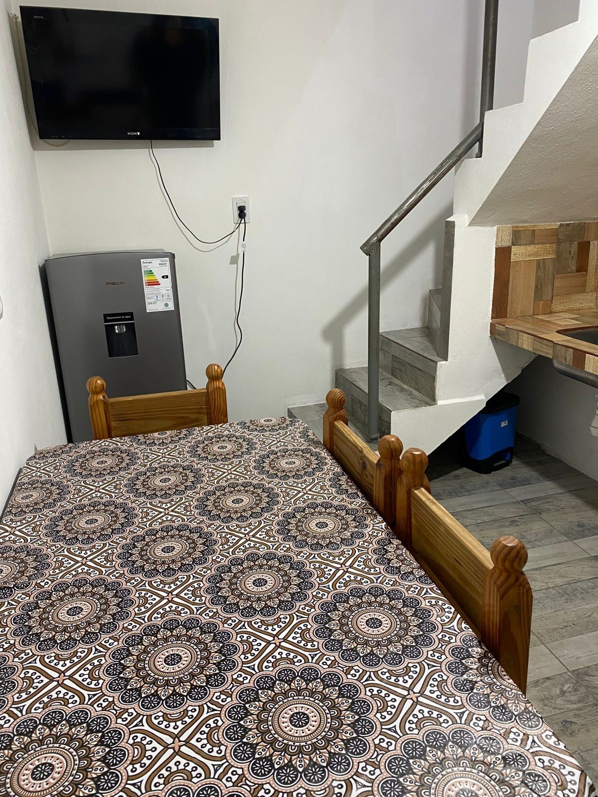 monoambiente muy amplio, para 2-3 personas, adaptado para personas con movilidad reducida, a solicitud colchón antiescaras. WiFi, tv. smart, heladera, cocina con horno, vajilla basica,sábanas, calefacción. ventilador, muy fresco. Área de parrilla, asador, disco, con mesas y sillas en exterior. Estacionamiento y parrillas compartido. Cuenta también con un futton que puede ser utilizado para dormir niños. A solicitud cuna practicuna.