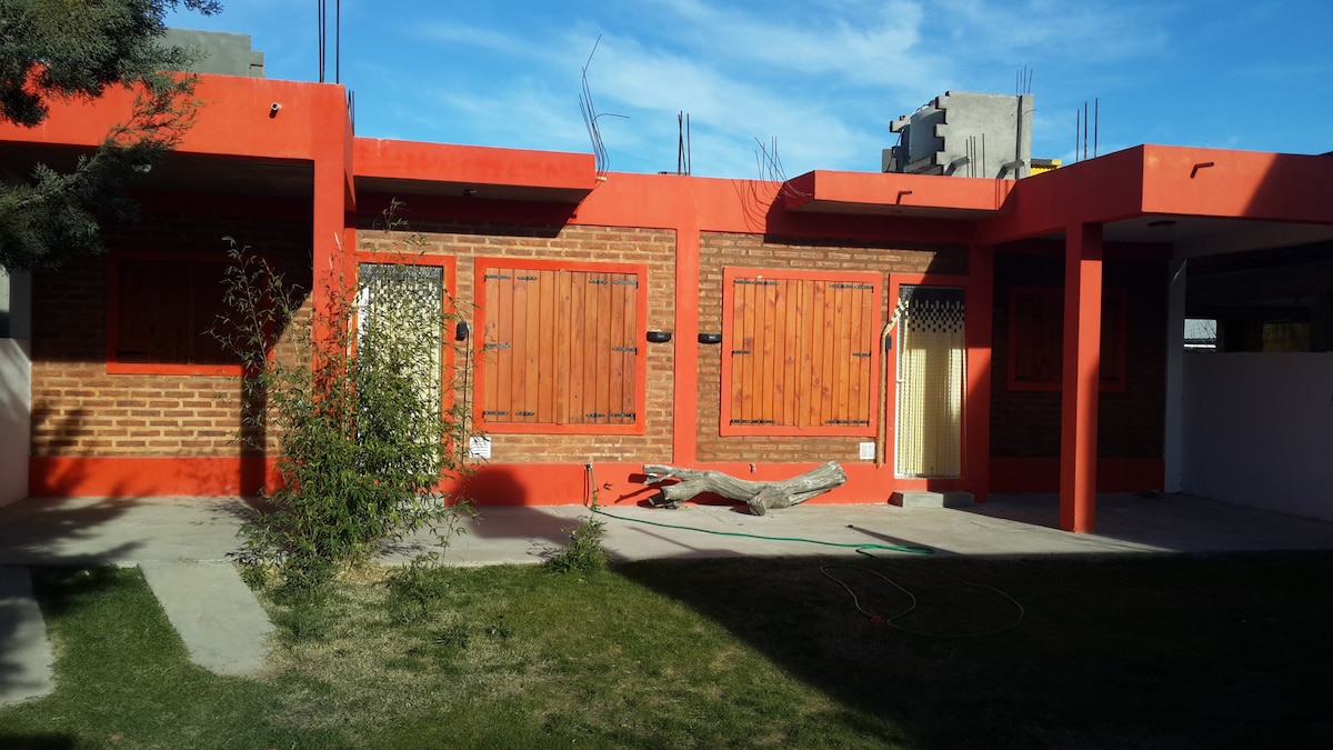 La casa está ubicada sobre calle Sierra Pailemán (538), a 2 cuadras de la playa ("6ta bajada"), y sale directo hacia las playas de Piedras Coloradas, el Sótano y El Fuerte Argentino. Recibe mucha luz por la mañana y la tarde. Patio amplio compartido, con parrilla. Entrada para estacionar. Está a dos cuadras de Olivos Patagónicos, 1ra plantación del Sur. Tiene tv con cable y wifi.