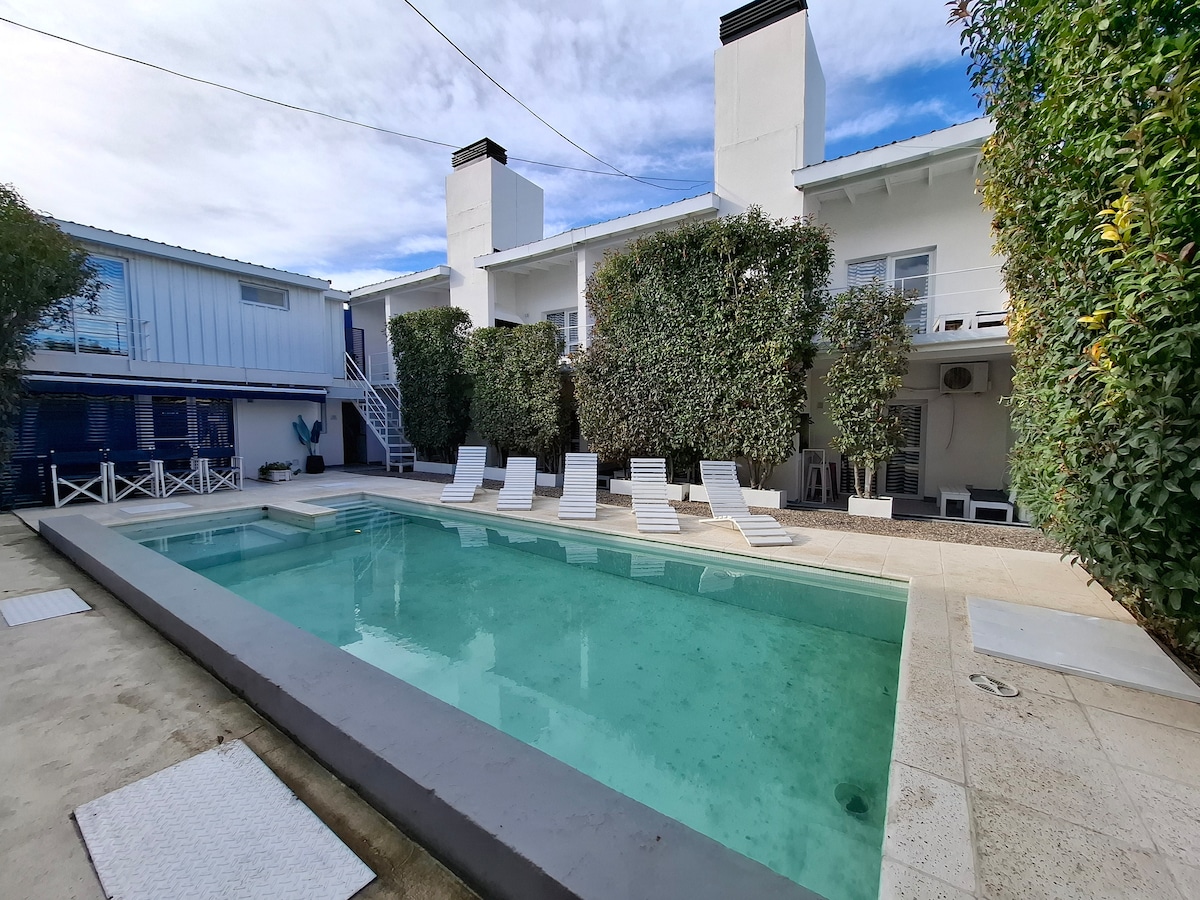 This peaceful off-grid apartment is surrounded by nature located just 500m from Playa Los Coloradas and a few minute drive from Las Grutas town center. The perfect place to get away. Equipped with plenty places to relax: the balcony, rooftop terrace with a beautiful view, or you can cool off by the pool. Theres trail that goes out to the beach in-front only a 4 minute walk away. The night sky is absolutely breathtaking.