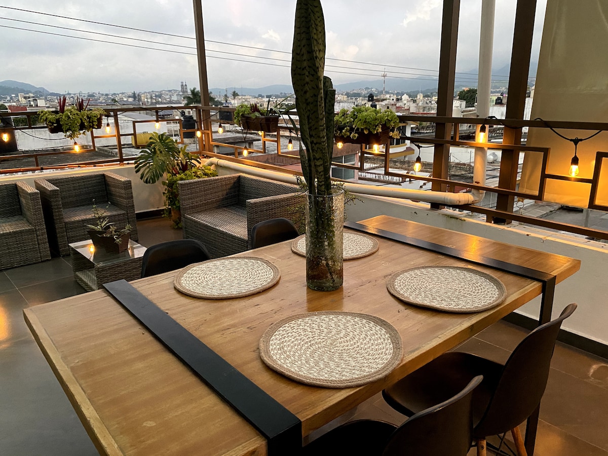 Disfruta de una experiencia con estilo en este alojamiento céntrico. Disfruta de este hermoso departamento tipo Loft, completamente equipado. Es un espacio con una vista relajante, cuenta con una terraza ideal para pasar una gran velada. El alojamiento está ubicado en una zona tranquila a unos pasos del parque "La Loma", muy cerca de Bares y restaurantes. Desplazarte a cualquier parte de la ciudad desde aquí es muy fácil y seguro.