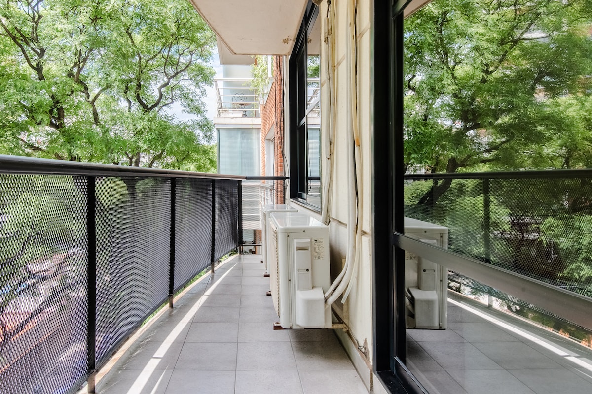 Wake up with the beautiful green view of the trees in the background, in this warm and comfortable apartment in the lively neighborhood of Palermo, surrounded by museums, shops, supermarkets and plenty of nice restaurants/bars to have a drink at sunset...With an unbeatable location it is an excellent starting point to visit the different neighborhoods of Buenos Aires. Building with security 24h/day. Internet speed 100 Mbps The apartment is cleaned with extra precautions and sanitized thoroughly. Apartamento de 50 m2 con vista verde, con balcón, en el corazón de Palermo. Tiene 1 dormitorio con cama matrimonial y 1 sillón cama de 1 plaza en el living. Black out en dormitorio y living. Posee caja de seguridad. Excelente ducha. Equipado con Internet Wi-Fi, posee 2 TV : una de 42" en el living y otra de 32" en la habitación con Netflix, 2 aires acondicionados, calefacción, microondas, tostadora, 1 gran heladera, cafetera y termo eléctrico, tender extensible para el secado de la ropa, plancha y tabla de planchar. El departamento ha sido reformado en mayo 2016, esto incluye pisos nuevos, colchón nuevo de alta calidad así como ropa blanca. En diciembre 2016 se colocó una cocina nueva, eléctrica. Me encuentro disponible en el celular para cualquier solicitud, consulta o recomendaciones sobre la ciudad de Buenos Aires o sobre el departamento. Apartment located in a safe and lively area, with a fantastic location that includes green spaces and an important gastronomic and cultural center very much appreciated of the city. Near the main cultural and touristic attractions. Steps from all means of public transport. Walking distance to Malba Museum. Only 10' from the Jorge Newbery National Airport. Ubicación muy práctica para moverse en BA con todos los medios de transporte públicos a 3 cuadras en Av.Las Heras y a 1 cuadra en Av.Libertador. Personas adicionales sin cargo. Se hace una limpieza general por semana con cambio de ropa blanca sin cargo. El departamento tiene puerta blindada y abajo en la recepción hay guardias de seguridad las 24h. Posee caja de seguridad.