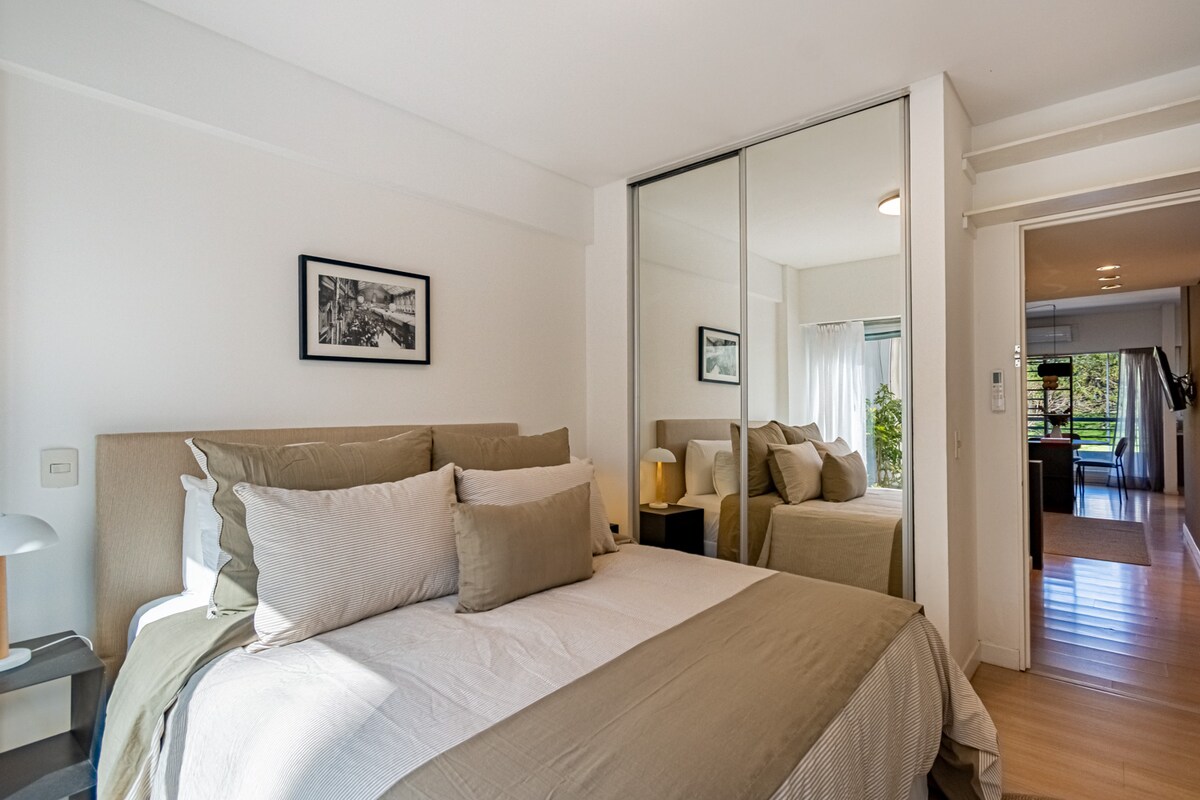 Relajate en este espacio tan tranquilo ,elegante y muy luminoso,cerca de todo para disfrutar de una excelente estadía en la ciudad,. parque las Heras, SHOPPING Alto Palermo, restaurantes, cafés Recoleta Mall, museo arte moderno, jardín Japonés, bosques de Palermo, facultades , sanatorios, clínicas, medios de transporte colectivos y subte. Será un placer recibirte!
