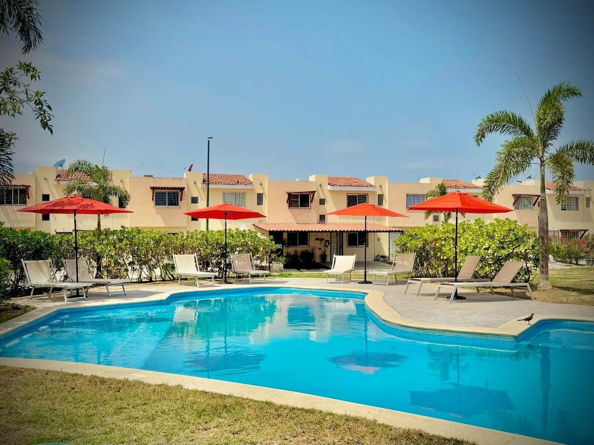 Acogedora casa en condominio privado, a solo 5 min del aeropuerto y de las playas de Nuevo Nayarit. Cuenta con 2 habitaciones, A/A en habitaciones y áreas comunes, cocina completamente equipada y estacionamiento. Disfruta de la alberca y de una hermosa terraza con asador en un ambiente tranquilo y seguro. Ideal para familias o parejas que buscan comodidad y excelente ubicación en Puerto Vallarta. ¡Te esperamos para una estancia inolvidable!