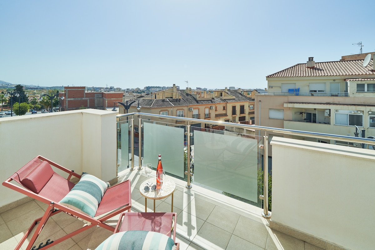Paraíso, sol y playa. Terraza con mucho encanto.