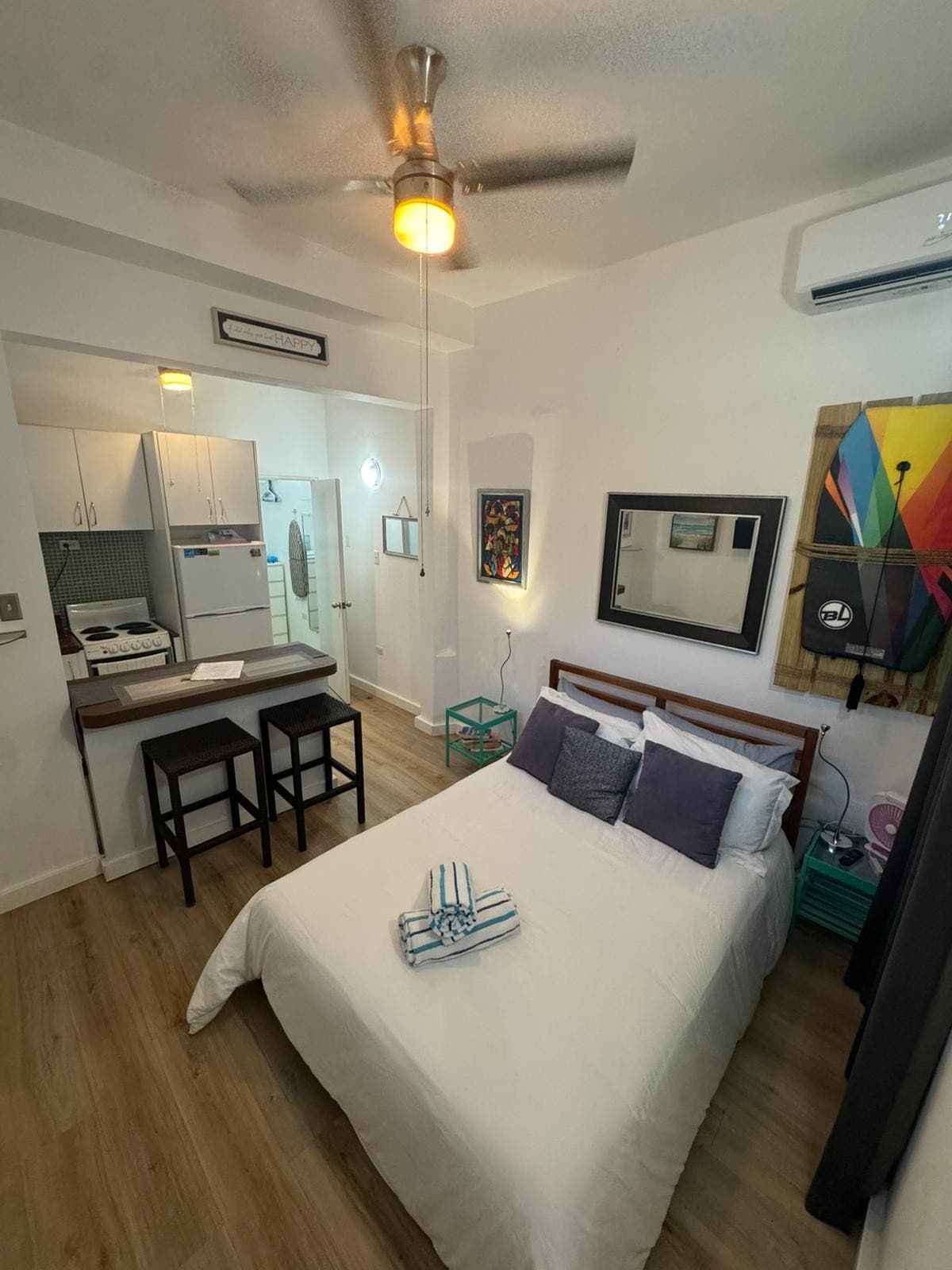 Enjoy a fully furnished and newly renovated Studio in Isla Verde. Great Location, my place is close to restaurants & dining, art & culture, bars & nightlife, beaches, 24h supermarket, and some shopping.. Location is super centric and very walkable to major touristy areas (7min to beach, 5 min Supermarket, 4 min Bank, 3 min Bar & Rest, 3 min Bus, and the space is beautiful.. My place is good for couples, solo adventurers, business travelers, friends.. 10 min ride from Airport