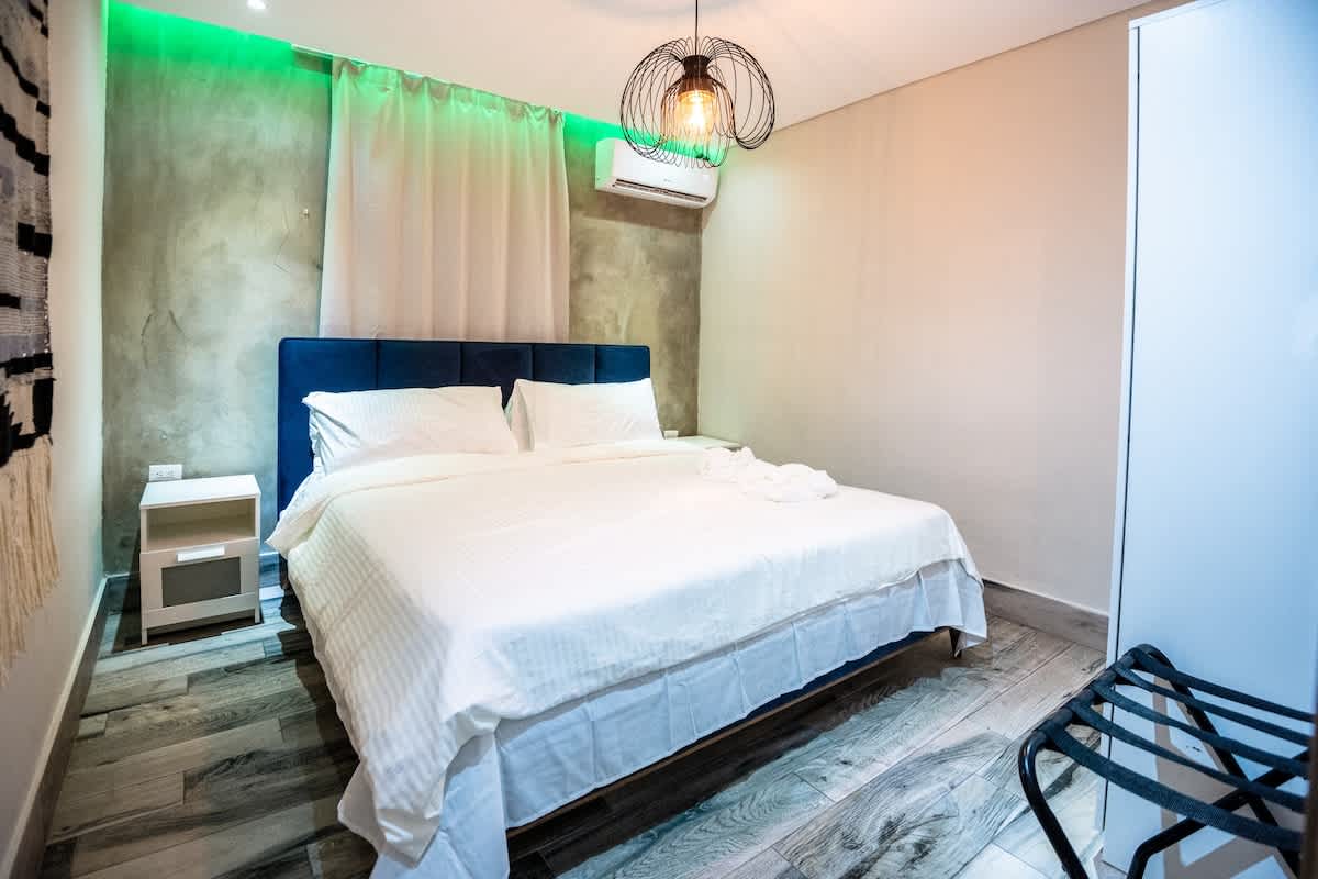 Welcome to » Cabaña Lanaī @ The Beach , where luxury meets paradise. This exclusive beachfront retreat boasts breathtaking ocean views, just 3 minutes from the airport & right at the beach. Immerse yourself in a beautifully designed boutique space, with soft sand-colored tones, tropical accents, and sophisticated furnishings. Relax in an expansive open layout featuring plush double beds, your own private balcony, and large windows that invite both natural light and the soothing Atlantic breeze.