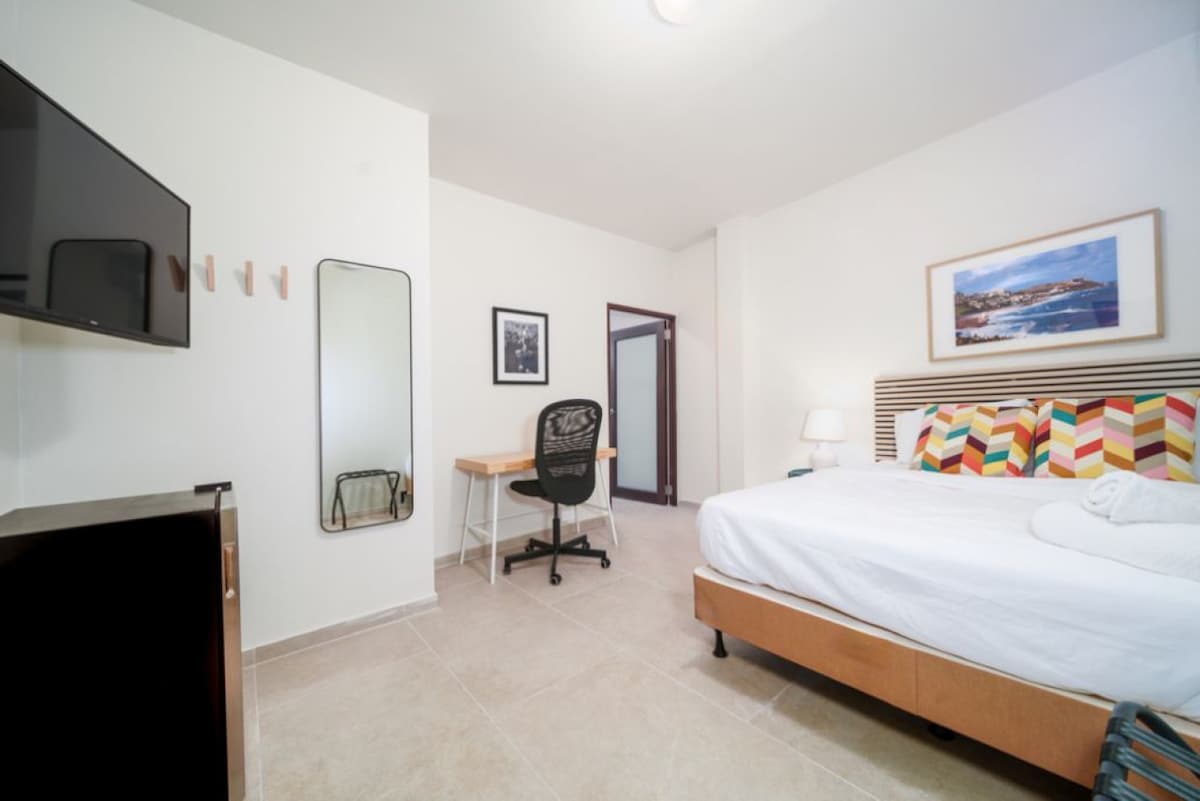 Welcome to our stylish urban retreat nestled in the heart of San Juan. This modern hotel room is designed for both comfort and sophistication, offering a seamless blend of contemporary design and warm hospitality. Our hotel room provides a picturesque backdrop that adds a touch of magic to your stay. Experience the comfort with our plush bedding, high-quality linens, and carefully curated furnishings. Stay connected with high-speed Wi-Fi, watch your favorite shows or movies on the smart TV
