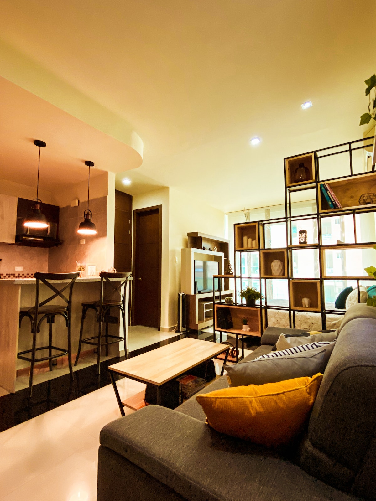 Modern apartment located in one of the most exclusive neighborhoods in Barranquilla. *Flexible check-in and check-out *1 bedroom with queen size bed and air conditioning. *Living room with sofa bed and air conditioning. *Fully equipped kitchen with utensils, basic appliances and washing machine. *Swimming pool, sauna, Turkish bath and rooftop terrace. *Smartfit gym nearby. *Free private parking. *Close to VIVA and Buenavista shopping centers, and to the main clinics and tourist areas.