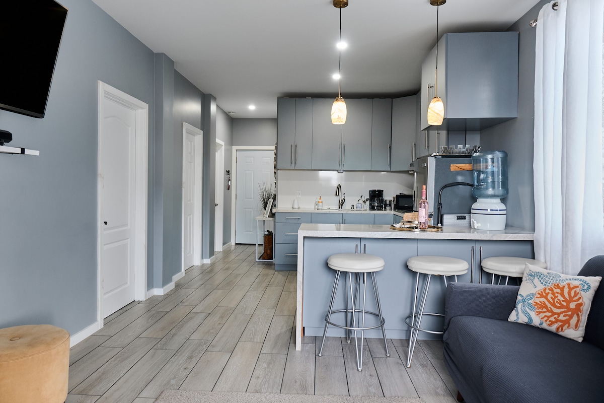 This unit has a unique style of its own. It’s fully black which makes it perfect to relax, and binging on your favorite movies/series. King size mattress and 75” TV *AC/Heater *Fast Wifi *Everything on pics fully PRIVATE Enjoy the beautiful sunset from our two-person bathtub & Terrace (Best view in the area!)🌅 Outdoor Kitchen 🍳/ Living Room with fire pit & MovieTheater! 🎥 Located inside a gated residential (24/7 security) Walking distance to local bars, Restaurants, and MalibuBeach(~1mile)